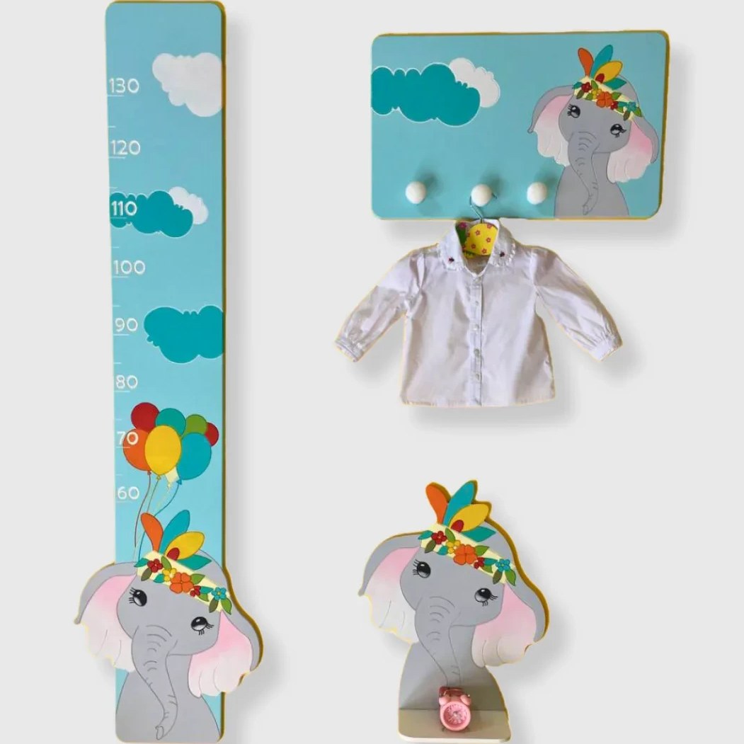 ست قدسنج و چوب لباسی و شلف طرح فیل دخترا